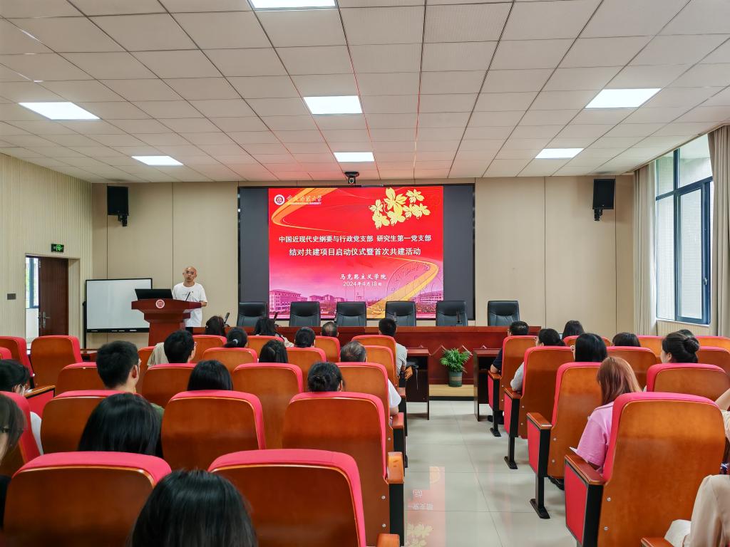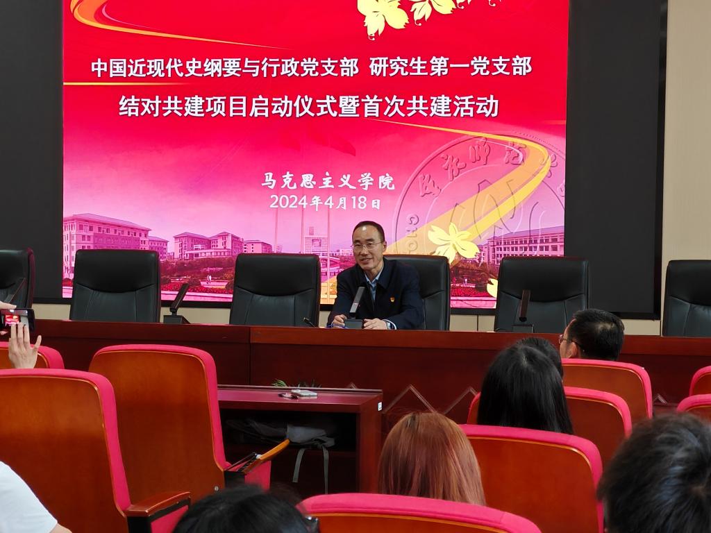 共建活动第二步是两个支部举行首次共建活动。主题是陈洪教授带领两个支部全体党员开展《“毛泽东‘为人民服务’的三重境界”》的学习。陈洪教授从毛泽东“为人民服务”到“坚持为人民服务”再到“全心全意为人民服务”的三重境界阐述中,呼吁全体党员同志在任何时候任何情况下都应该始终密切联系群众,坚持与人民同呼吸共命运的立场,坚持全心全意为人民服务的宗旨,坚持群众是真正英雄的历史唯物主义观点。
