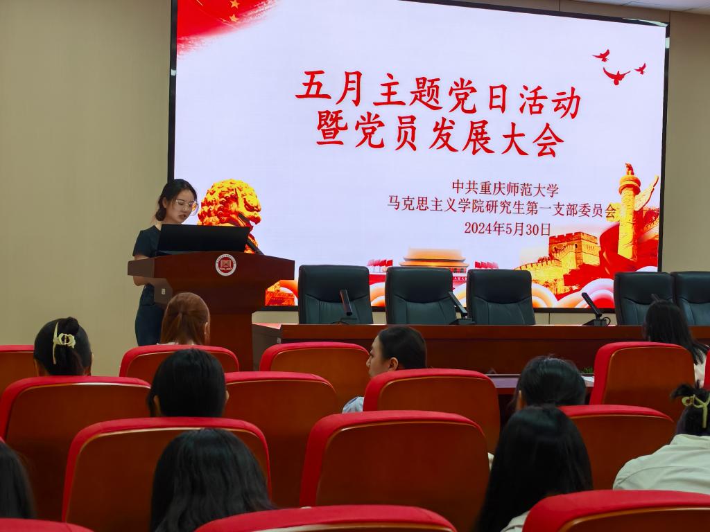 研究生第一支部于汇贤楼X106会议室召开“五月主题党日活动暨党员发展大会”,会议由支部书记李剑同志主持,共两项议程。