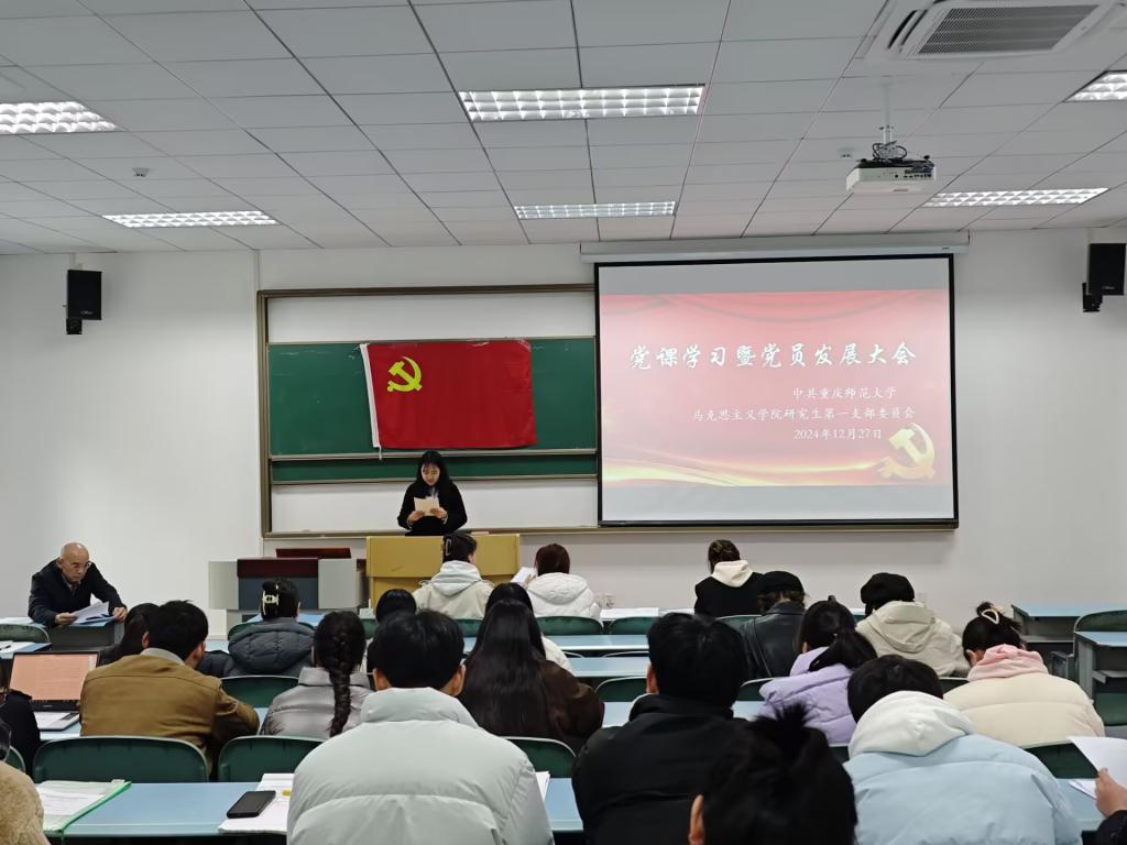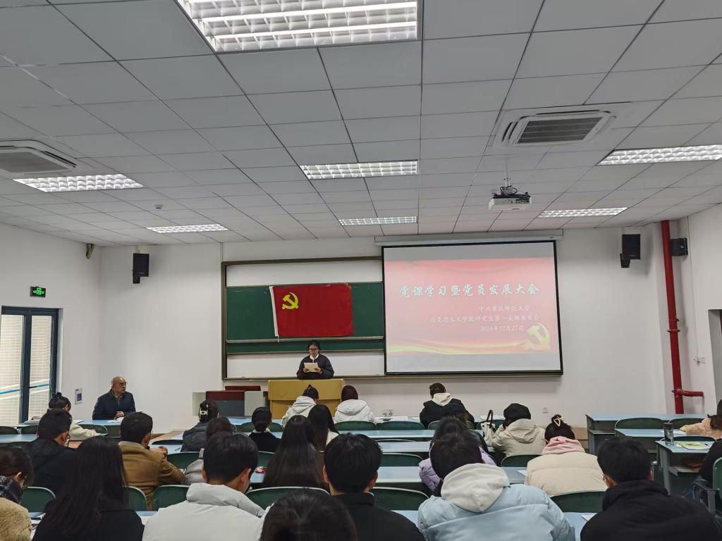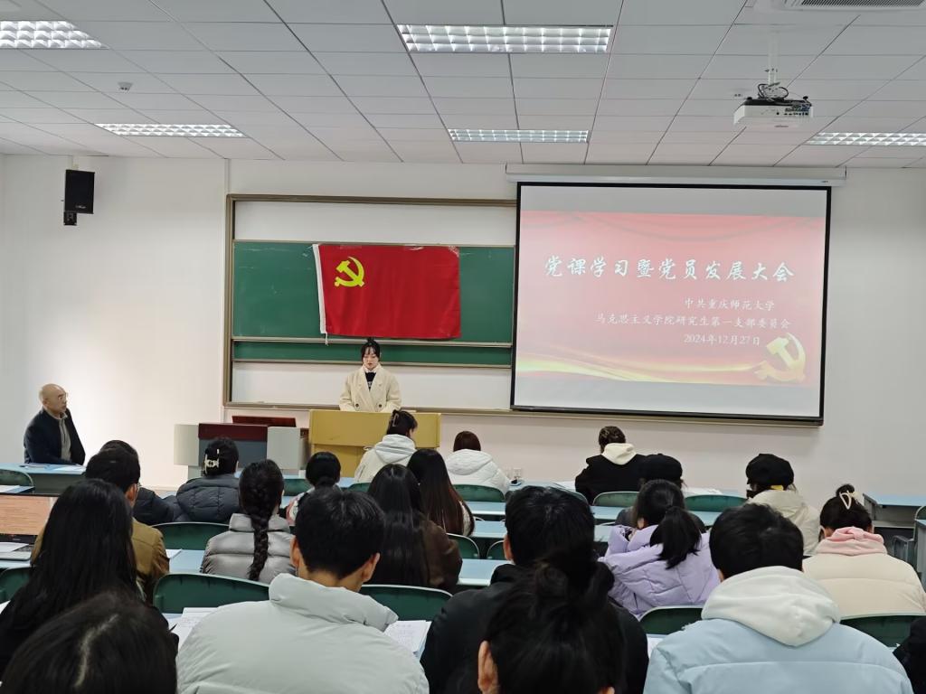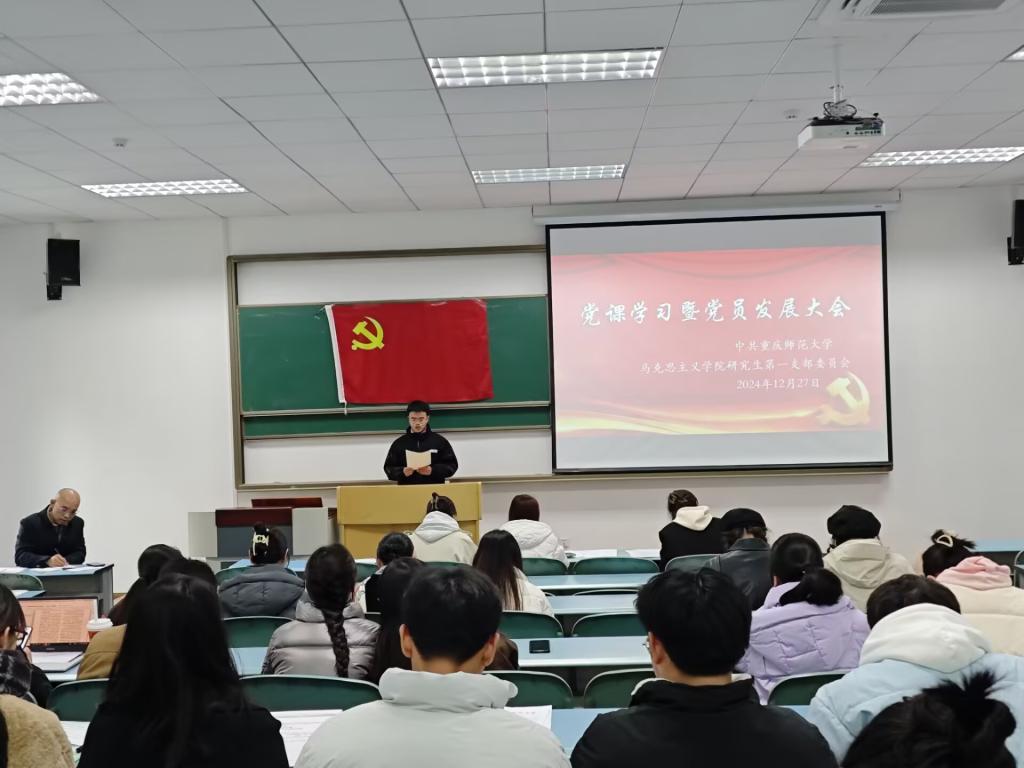 研究生第一支部于2024年12月27日下午14:30,在求是楼127教室举行了党课学习暨党员发展大会。会议由支部书记李剑同志主持,共四项议程。