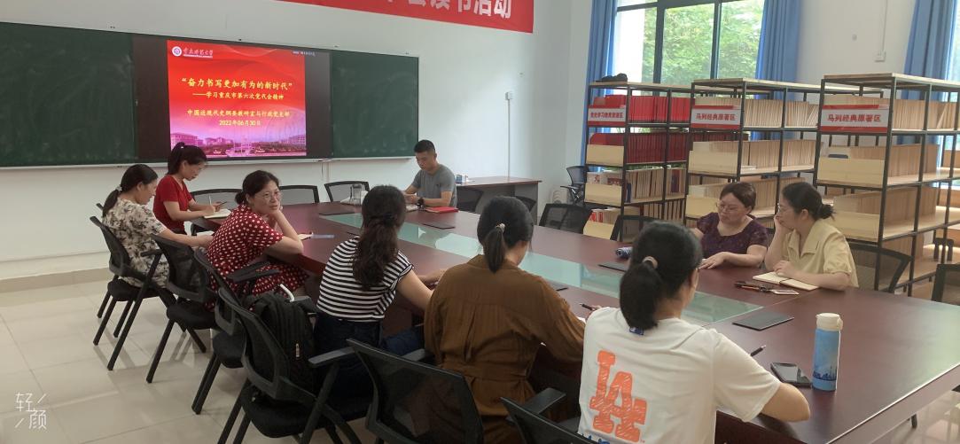 2022年6月30日下午13:30,在学院楼107会议室,纲要教研室与行政支部开展了主题党日活动,全体支部党员围绕重庆市第六次党代会精神进行了深入的学习与交流。