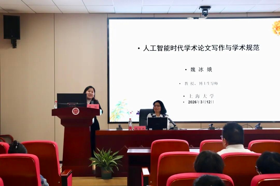 为进一步深化学术交流,拓宽研究生的学术视野,2026年3月12日下午,看漫画 特邀上海大学看漫画 魏冰娥教授开展“人工智能时代学术论文写作与学术规范”主题讲座。本次讲座在看漫画 汇贤楼106会议室举行,由看漫画 侯玲副院长主持。