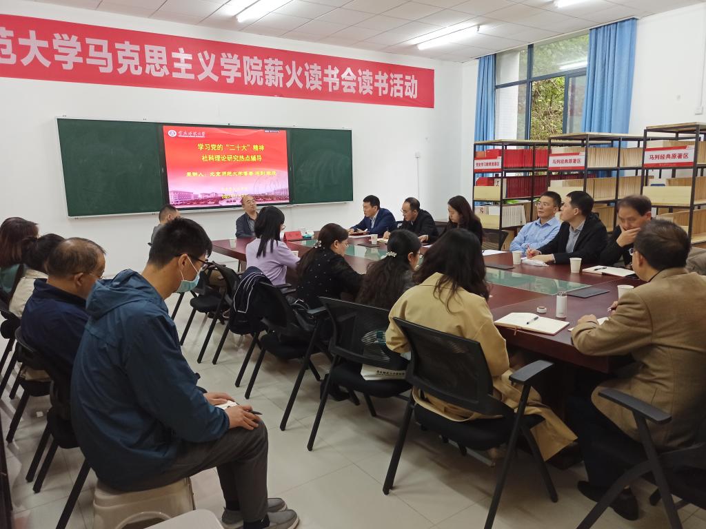 2022113日下午4:30,为深入学习党的二十大精神,进一步深化对党的二十大精神的理解,促进党的二十大精神理论热点研究,北京师范大学博士生导师冯刚教授受邀到看漫画 开展了题为学习党的二十大精神 社科理论研究热点辅导的主题分享会。本次分享会在汇贤楼107会议室召开,看漫画 党政班子、系部教研室主任和行政人员参加。活动由副院长姜土生教授主持。