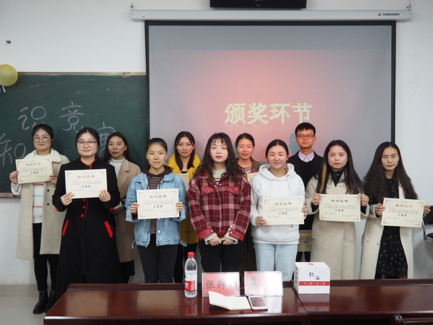 通过激烈角逐,黄宏亮同学获得一等奖,廖米梅、戴丽两位同学获得二等奖,李亚、谭京凤、武银凤三位同学获得三等奖,丁海燕、李秋思、陈庆、李雪莲四位同学获得优秀奖。