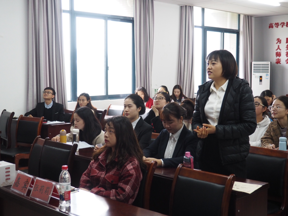 本次知识竞赛分为必答题和抢答题,如排名相同,则采取即兴演讲的方式决出胜负。比赛现场,各个选手反应迅速,纷纷展现出丰富的知识素养。在抢答环节中,参赛选手回答错误的题目,则由现场观众举手作答,活动现场气氛高涨。前两轮环节结束后,积分相同的两位选手,戴丽同学和武银凤同学围绕全国教育大会讲话精神进行了简短的演讲,嘉宾张莉莉对两位同学做了针对性点评并投出了她关键的一票。