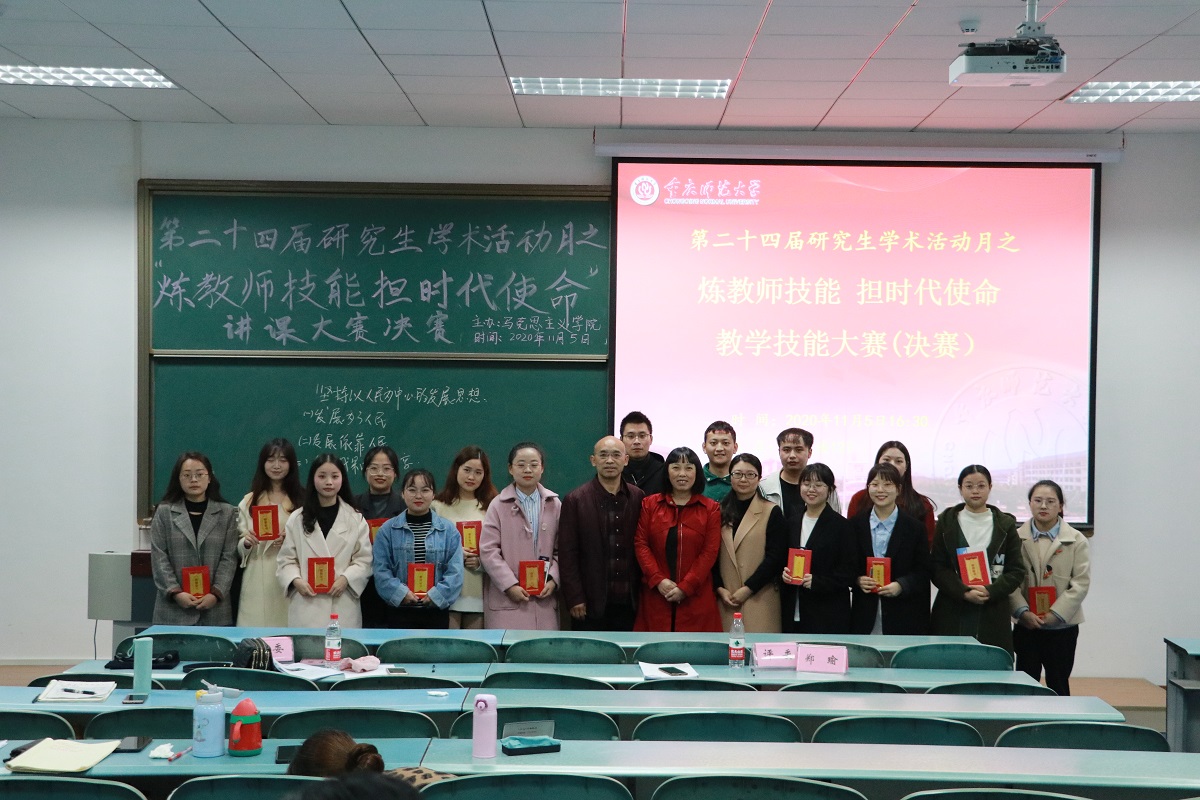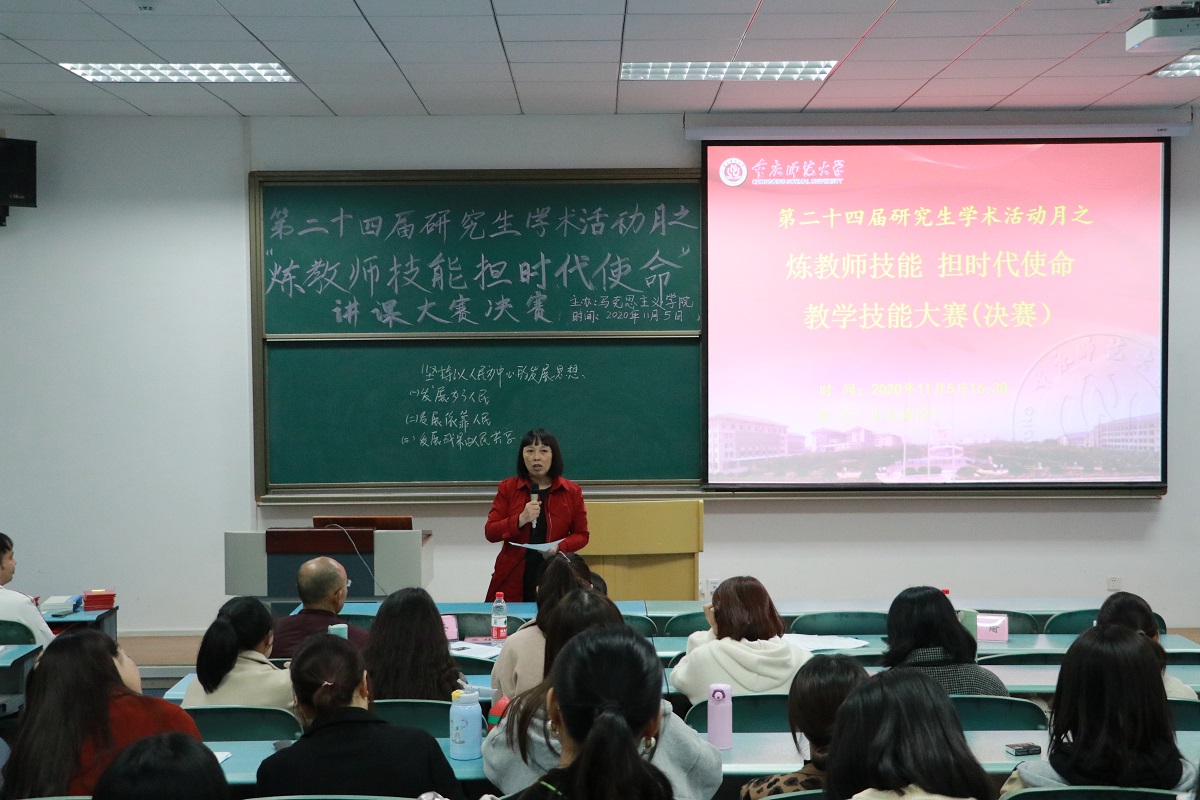 第二十四届学术活动月研究生教学技能大赛决赛如期举行。2020年11月5日下午16:40至18 :30,8位选手于求是楼127给同学们带来了一场别开生面的教学盛宴,本次比赛由李剑副教授、郑瑜副教授、兰桂萍副教授担任评委。研究生米果担任主持人。