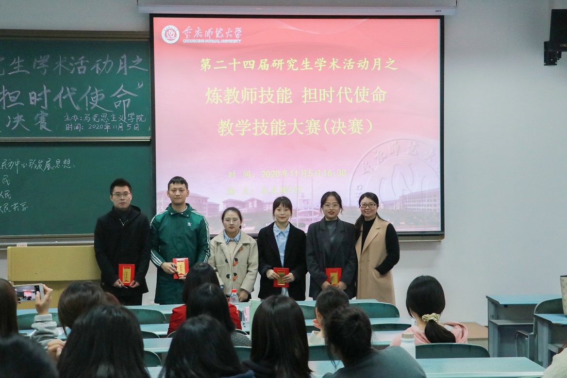 经过激烈角逐,邓玉苹、黄丹、赵亚玲获得本次教学技能大赛一等奖;陈凤霞、万晓慧、唐春花、张恒瑞、周玉杰获得二等奖;王丽娟、李虎姣、马彬、陈娉、傅潇潇、卢晓林、李灿、马珊获得三等奖。
