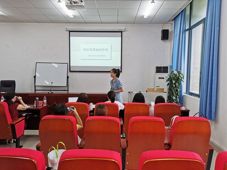 比赛过程中,每位同学都充分运用了多媒体手段对自己的教学节段进行了展示,他们的教学内容涉及经济、政治、文化和哲学,如“市场调节”“更好发挥政府的作用”“运动的规律性”等。比赛过程中,选手们有趣生动的导入、生动直观的教学案例以及精致美观的教学课件吸引了在场师生,严谨的逻辑语言、清晰的教学思路、新颖的教学方法也让评委为之惊喜。