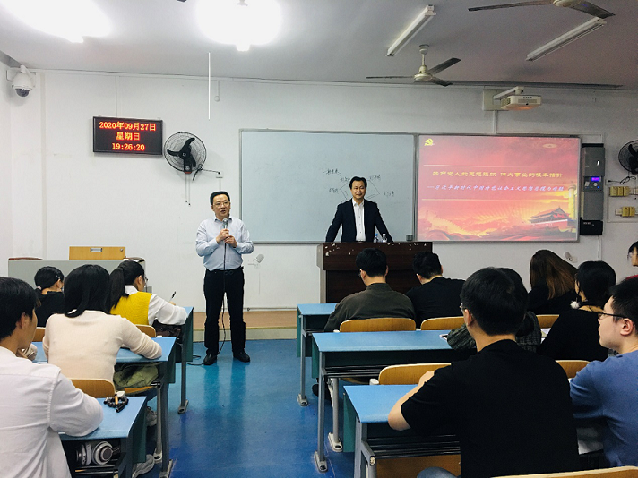 曾书记以“共产党人的思想旗帜,伟大事业的根本方针——习近平新时代中国特色社会主义思想总揽与精髓”为题,分别从习近平新时代中国特色社会主义思想产生的时代背景、丰富内涵、重大意义、新时代带来的新变化、在新的时代条件下坚持和发展什么样的中国特色社会主义、怎样坚持和发展中国特色社会主义的时代课题;习近平新时代中国特色社会主义思想的核心要义、“八个明确”的丰富内涵、鲜明理论特色和十四条基本方略的实践要求;习近平新时代中国特色社会主义思想的历史地位、重大历史贡献;以及做习近平新时代中国特色社会主义思想的传播者实践者等四个方面为同学们进行了详细深入讲解。