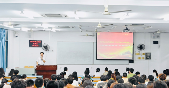 为深入学习宣传贯彻党的二十大精神,扎实推动习近平新时代中国特色社会主义思想“三进”工作,9月20日晚,学校原党委书记曾礼教授在弘德楼15204教室开讲《习近平新时代中国特色社会主义思想专题摘编》全校通选课第十期线下第一讲。本次授课由看漫画