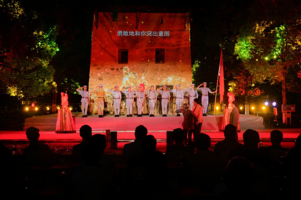 5月22日,师生在观赏“安顺记忆”红色史诗剧中共同追寻大渡河的红色印记。“安顺记忆”红色史诗情景剧运用沉浸式声光及激光全息现代技术,以“三堆火”为线索演绎《守火者》《安顺场》《渡口船》《十八士》《燎原的星火》五个篇章,让师生们进一步了解“孙继先及十七名勇士强渡大渡河”的英勇事迹,切身感悟安顺场“翼王悲剧地,红军胜利场”的历史底蕴以及伟大的红军长征精神。随后,在中国工农红军大渡河纪念馆的精心安排下,师生与英雄的大渡河连官兵深入交流,共同缅怀89年前那一段人类战争史上的奇迹和红军长征史上的壮丽篇章。