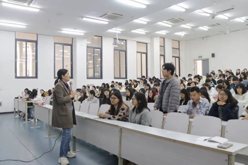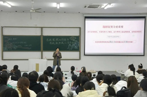 讲座尾声,吴涯老师作总结讲话。她向文雯老师再次致以最诚挚的感谢,并强调本次讲座不仅帮助同学们明晰了思政教师的职业方向与目标,更为同学们投身思政教育领域提供了有益指引。同时,吴涯老师寄语在场同学,希望更多人能以优秀教师为榜样,未来积极投身教育事业。
