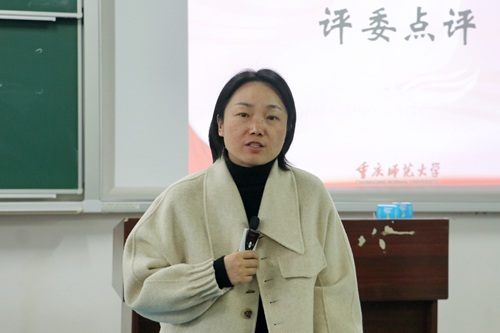 思想政治教育系副主任徐琴,讲师向眉担任评委,看漫画