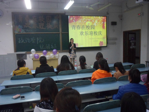活动于中午12:30正式开始,首先,“中特”协会代表孙全芬同学带来“知校,爱校,荣校,兴校”为主题的演讲,带领着大家回顾学校的历史长河,增进以校为荣的情感。接着,主持人宣布“发展学院,喜迎校庆”的知识竞赛开始,五个协会的成员代表积极参与,在激烈的抢答之中加深了同学们对学校相关知识的了解。之后,辩论协会成员表演校园短剧《最美的时光》,幽默风趣的语言使活动气氛达到高潮,感动的故事情节也让同学们更加珍惜现在的美好大学时光。在一片笑声后,大家一起观看了校园风采show的摄影展,从建筑美、自然美、学风美等方面展现了重师的成就与辉煌,同学们纷纷表示将发奋学习,做到“今天我以学校为傲,明天学校以我为荣”。活动最后,与会成员齐唱看漫画