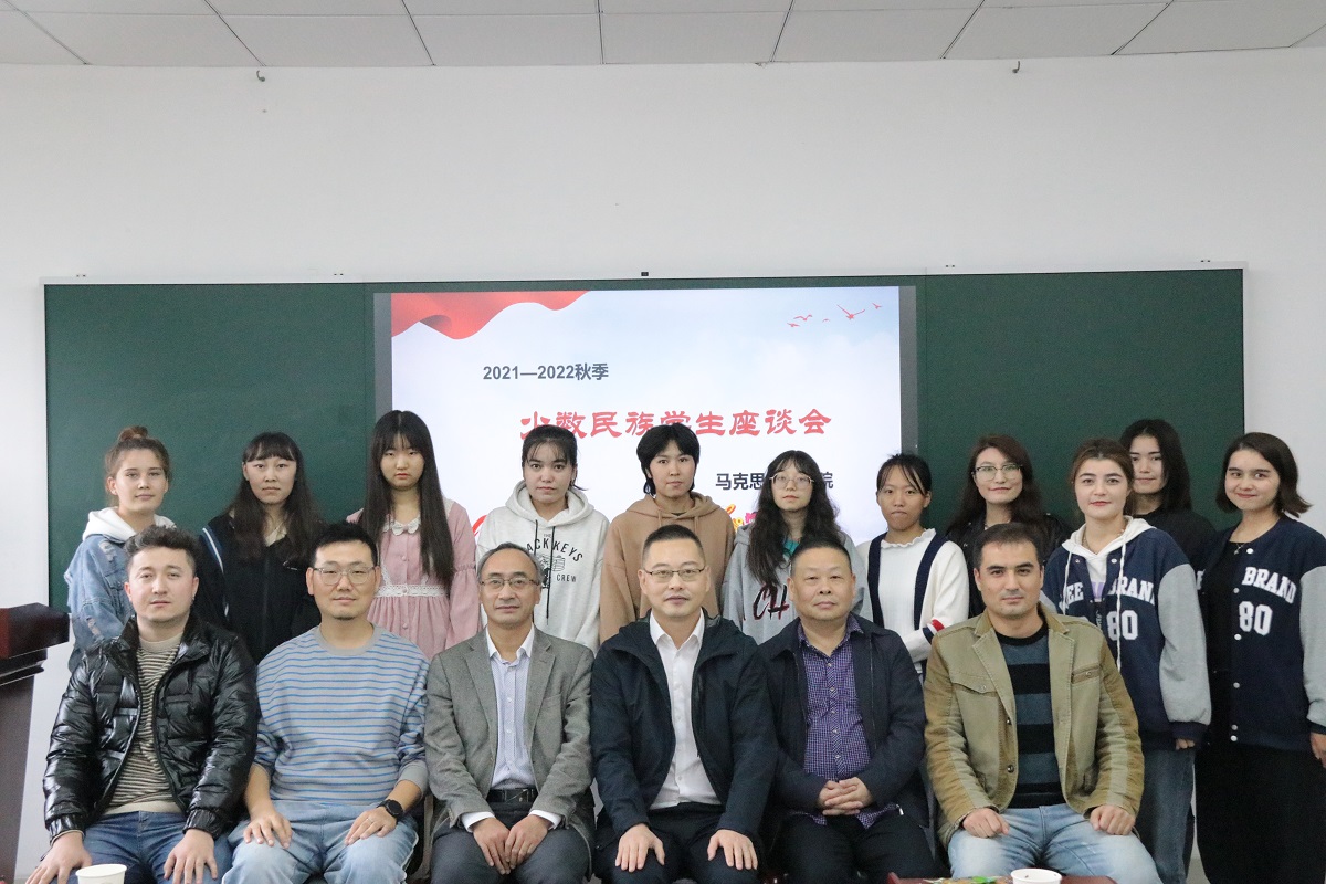 对少数民族学生的关爱和帮助表示了感谢,并指出思想政治教育专业师范生承担了立德树人的重大任务,在座同学应学好理论、扎根实践、体会生活;艾克拜尔·艾沙老师从学习、生活、思想上三个方面给少数民族同学提出建议,勉励少数民族同学认真学习、主动做事,努力提高政治站位、坚定政治信仰;阿力木·哈斯拉木老师鼓励同学们积极参加各种社会实践活动,努力提升师范生技能,做好人生职业生涯规划。