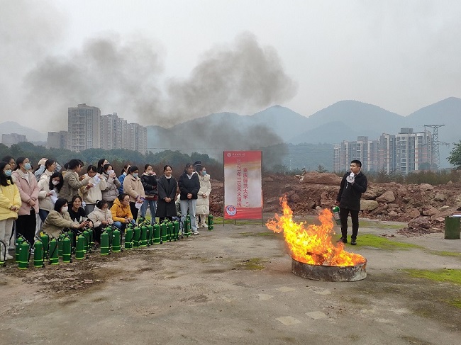 到达指定场地后,保卫处老师向同学们讲解了灭火器的功效,并演示了灭火器的使用方法。随后,同学们分批进行灭火体验。在保卫处、学生处领导与老师组织指导下,同学们六人一组依次进行油盆灭火现场体验。针对个别学生出现的灭火器使用不当情况,保卫处老师耐心指导。在消防演练结束后,与会同学表示参加此次消防演练受益匪浅,发生火灾时要不慌张不乱跑,有秩序逃离现场,同时也进一步增强了安全防范意识,了解了正确的自救逃生方法及灭火器材的使用方法。