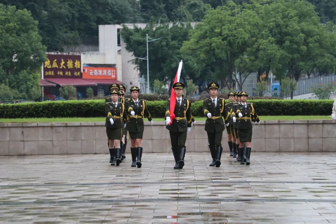 7时40分,学院师生于正校门广场列队完毕。国旗护卫队的旗手们着装整齐,迈着矫健的步伐,护着鲜艳的五星红旗走向升旗台。伴着《义勇军进行曲》响起,鲜艳夺目的五星红旗冉冉升起,全体师生庄严肃立,怀着崇高的敬意和自豪的心情向五星红旗行注目礼,祝福祖国繁荣昌盛。
