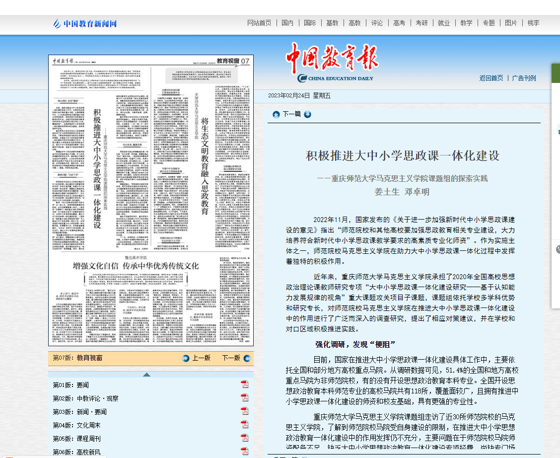 中国教育报:积极推进大中小学思政课一体化建设——看漫画 课题组的探索实践