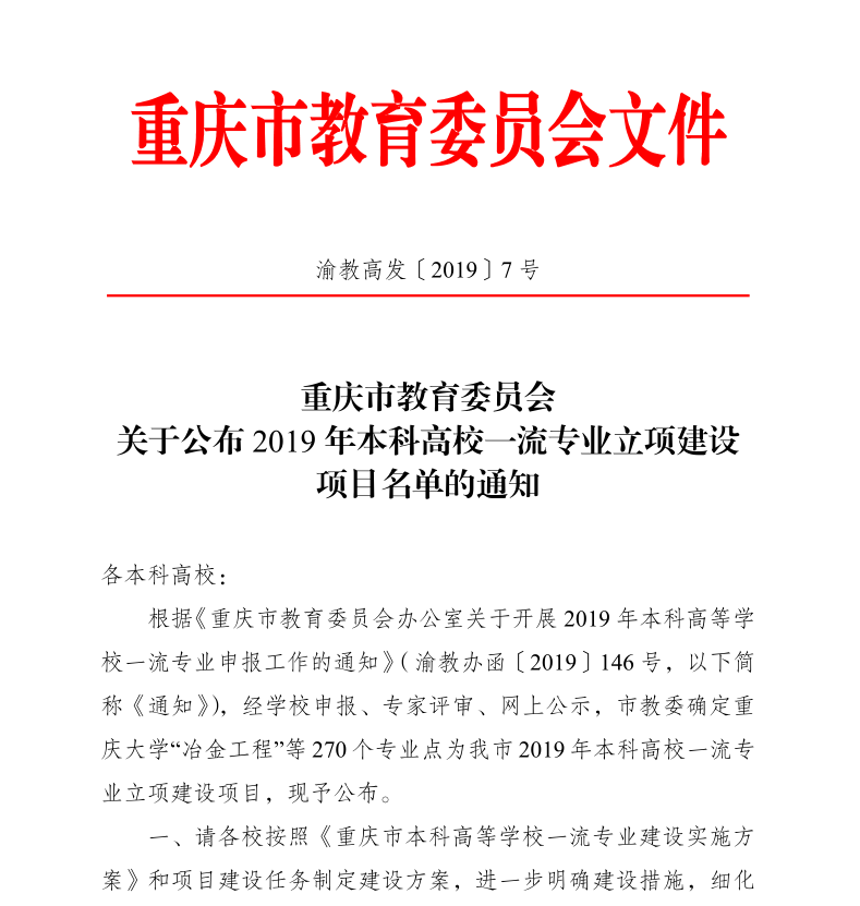 渝教高发〔2019〕7号 公布本科高校一流专业立项建设项目名单.pdf