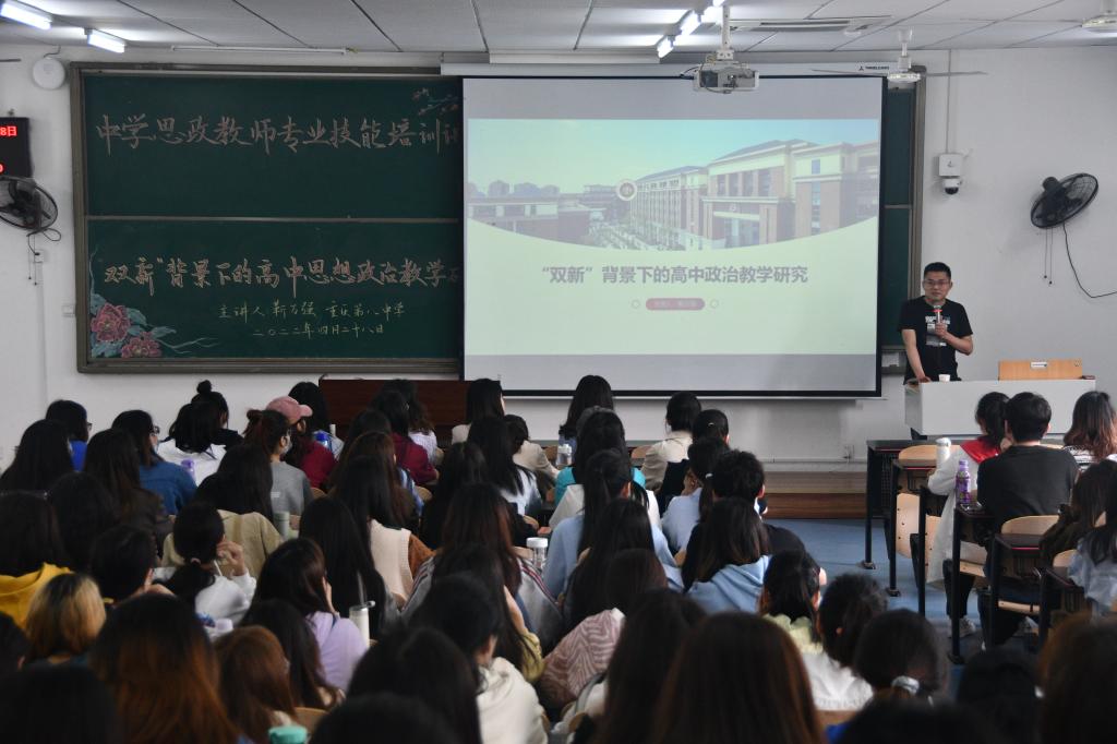 特邀重庆市第八中学校政治教研组组长、中学政治高级教师靳万强老师,于砺志楼2409教室开展“双新”背景下的高中思想政治教学研究——中学思政教师教育教学素质培养主题讲座,2020级思想政治教育专业全体本科生参加,看漫画