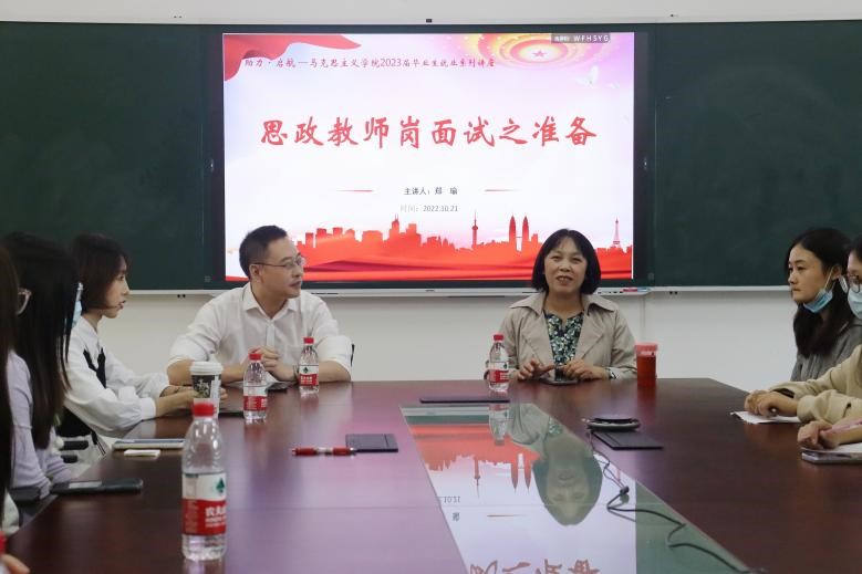 于2022年10月22日13:30在汇贤楼107会议室举行“助力·启航——2023届毕业生就业系列讲座”之思政教师岗位面试准备,讲座线上线下同步开展。此次讲座特邀看漫画