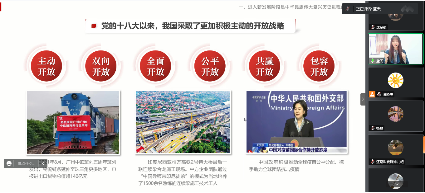 通过腾讯会议举办了2022—2023学年第一学期教学示范观摩课、新进教师公开课活动。活动由孔庆茵教授主持,学院全体思政课、专业课教师参与。