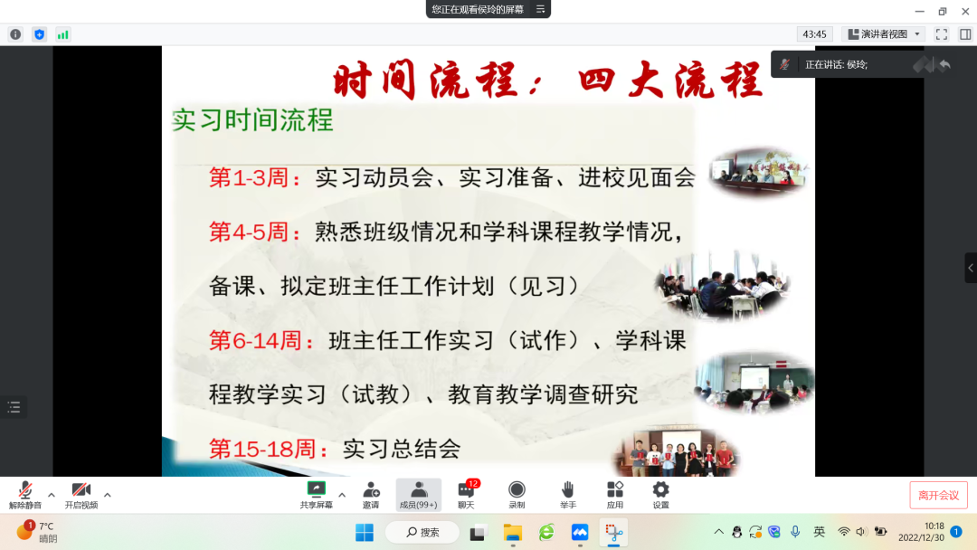 会议第二项,侯玲院长从“四大过程”“三大内容”给师生们全面介绍了实习规范和要求。