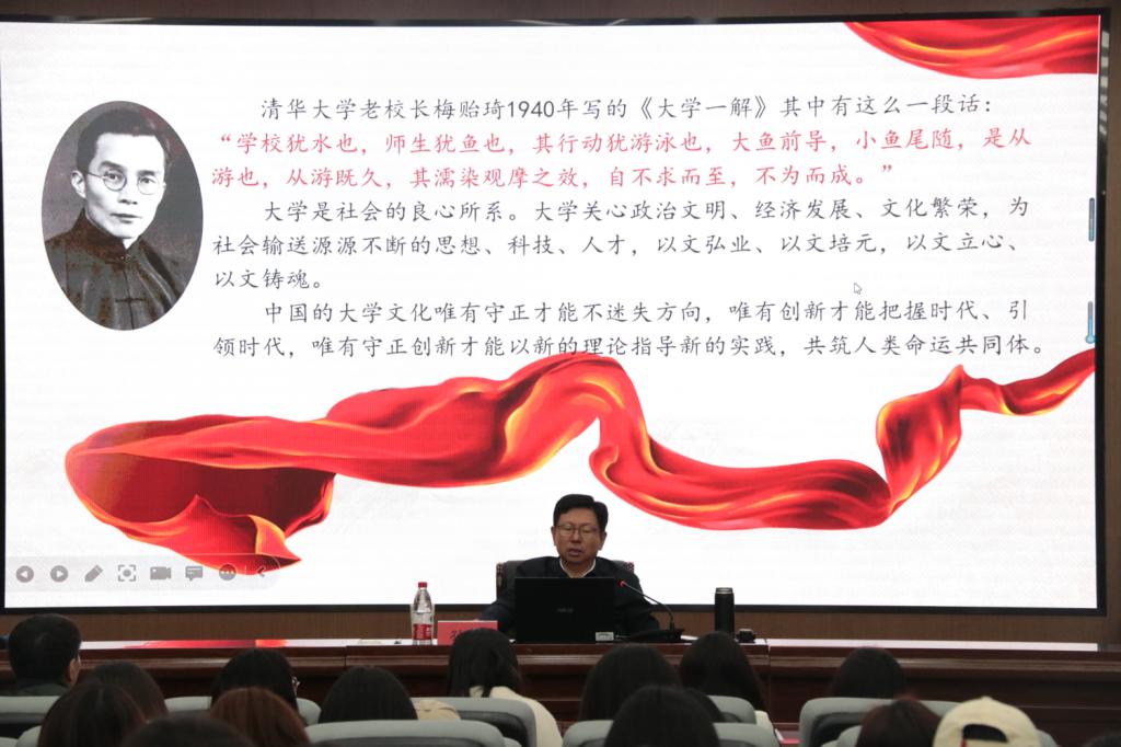 讲座中,孙雷教授聚焦“大学文化在传承中不断发展创新”的时代主题,从回望过去、着眼当下、放眼未来三个方面阐述了当今时代背景下大学文化守正创新的理论逻辑和实践路径。