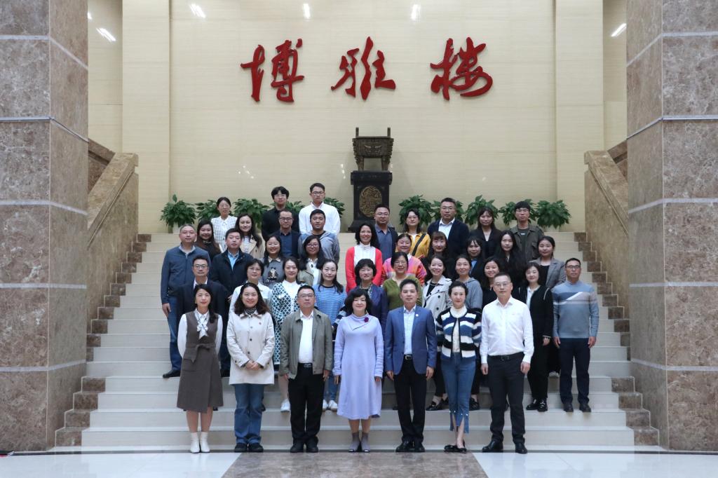 辅导员成长论坛交接。文学院党委副书记杨梅从学院党委副书记方敏手中接过“辅导员成长论坛”坛徽,并承诺之后论坛的举办将会继续发扬本次论坛中理论与实践相结合的精神。