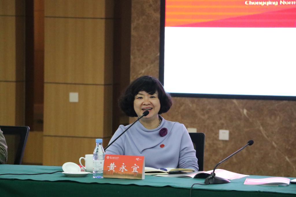 黄永宜副校长讲话。黄校长首先肯定了本次辅导员成长论坛的举办,接着强调论坛要做到务实与务虚紧密结合。同时,黄校长还指出,学工队伍应坚持理论研究,努力产出智力成果,致力培育教师教育特色鲜明的重师学子。